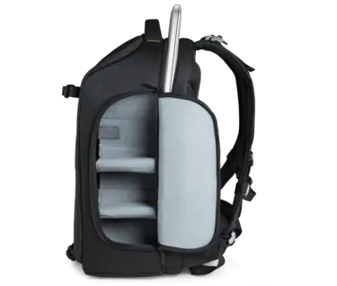 · Plně přístupná přihrádka na zip nabízející neomezený přístup k fotoaparátu a objektivům